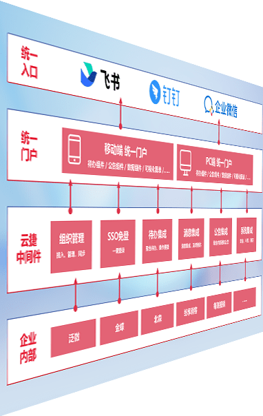 对协作平台提供支持服务,,支持企业应用与协作平台对接,,,包含组织同步、、、、消息集成、、、待办集成等。。。支持目前主流的协作平台:钉钉、、企微和飞书。。